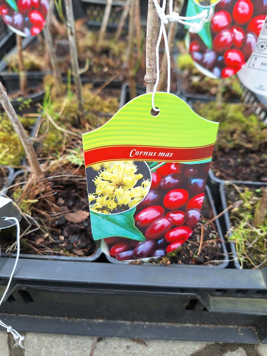 Dřín obecný - Cornus mas patří mezi oblíbené jedlé keře v naších zahradách. Plody dřínu obecného mají jasně červenou barvu a obsahují vysoké množství vitamínu C. Plody dozrávají koncem srpna a sklízíme je až do konce září. Keř dřínu obecného vydrží až do -35°C. Keř není nijak náročný na pěstování a dobře snáší i vyšší nadmořské výšky. Dřín obecný se také vysazuje z důvodu krásných žlutých květů které kvetou již začátkem března. Keř dřínu obecného jsou medonosné a přitahují včely. Sazenice keře dřínu obecného nabízíme dobře zakořeněné v květináči.